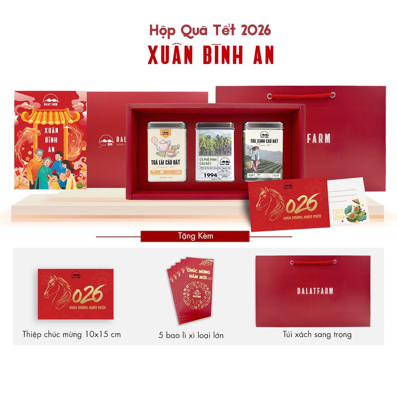 Hộp Quà Xuân Bình An (Cà Phê Phin 250g - Trà Lài 110g - Trà Xanh 110g)