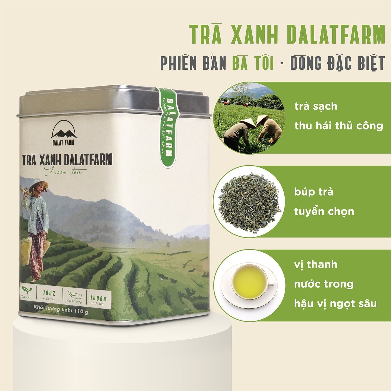 Trà Xanh DalatFarm - Hộp 110 g (phiên bản đặc biệt Bà Tôi)
